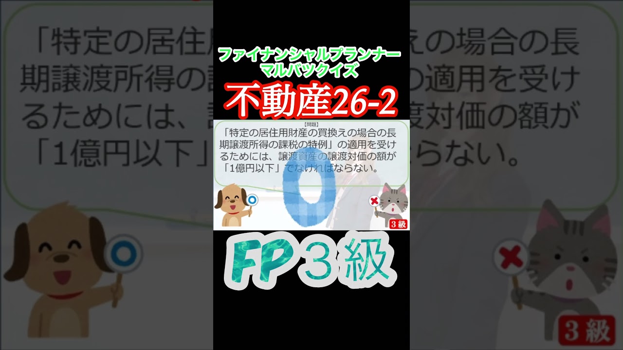 【FP3級】不動産26-2 #ファイナンシャルプランナー#◯×クイズ#マルバツ# FP#3級#2級#教育#簿記#金融#株式#税金#保険#猫#ライフ#犬#相続#過去問#1分で知識アップ ファイナンシャルプランナー(FP2級・3級) X LINE コピー 2025.07.112025.07.12