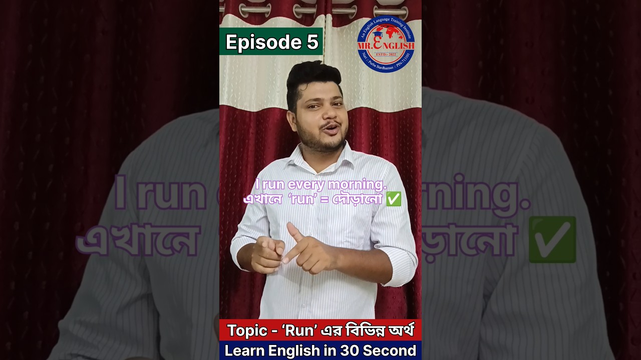 #UseofRun #LearnEnglishIn30Seconds #EnglishForBengali #SpokenEnglish #EnglishVocabulary #DailyEnglish #BengaliToEnglish #EnglishLearning #EnglishShorts #IELTS #GrammarForBeginners #SpokenEnglishBengali #SajalSir