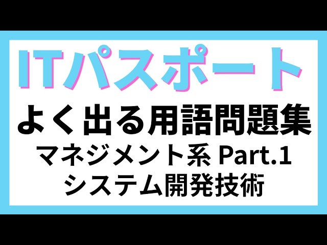 この動画ではマネジメント系の「大分類 4:開発技術 中分類 8:システム開発技術」分野の用語を取り扱っています。