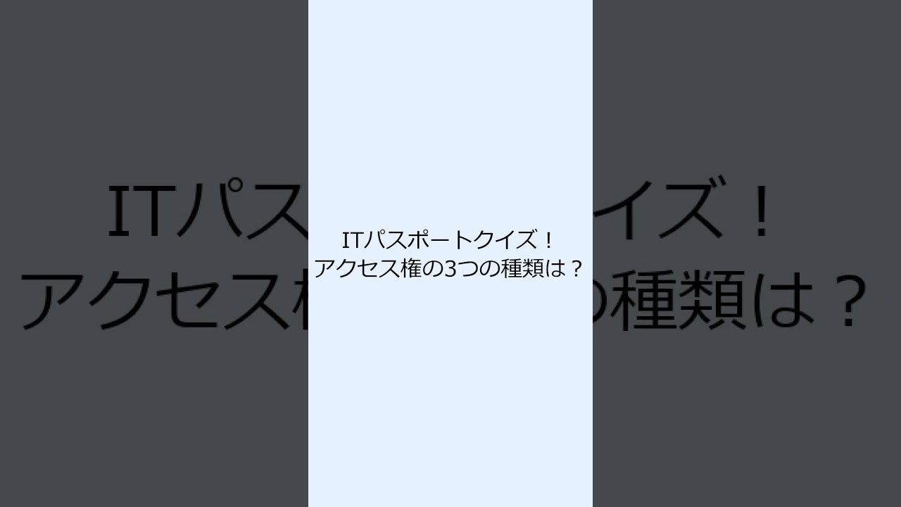 ITパスポート試験でよく出る!「アクセス権」の3つの表し方をクイズ形式で30秒で学べるショート動画です。