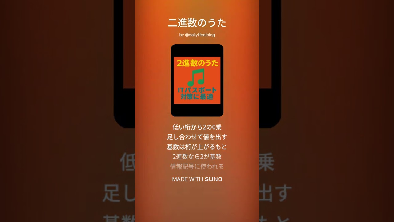 #2進数のうた #ITパスポート #情報Ⅰ #2進数 #AI学習 #試験対策 #AI作曲 #SunoAI #デジタル表現 #共通テスト対策 #学習ソング #情報教育 #ai作曲
