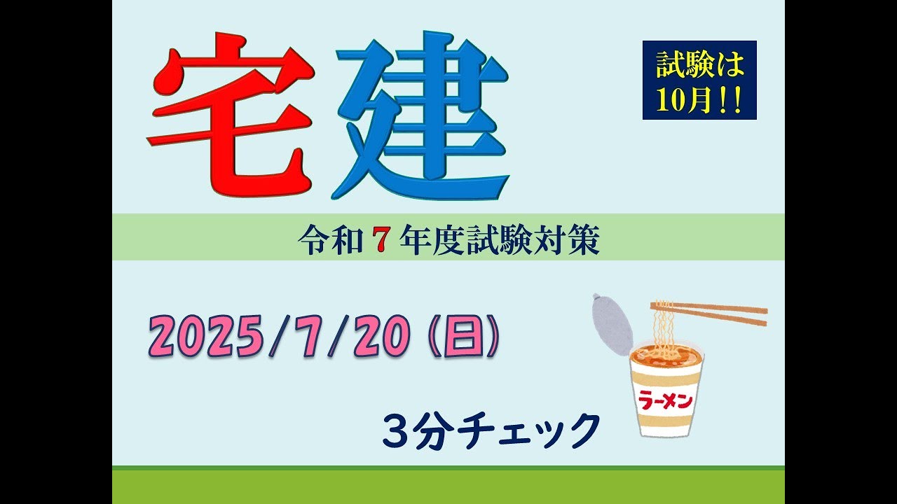 【令和7年宅地建物取引士対策】2025/7/20(日)3分チェック 宅建(宅地建物取引士) X LINE コピー 2025.07.20 宅地建物取引士試験は10月19日に実施されます。毎日3問ずつ配信しますので、スキマ時間に取り組んでください。試験50日前からは毎日10問配信します。頑張りましょう!