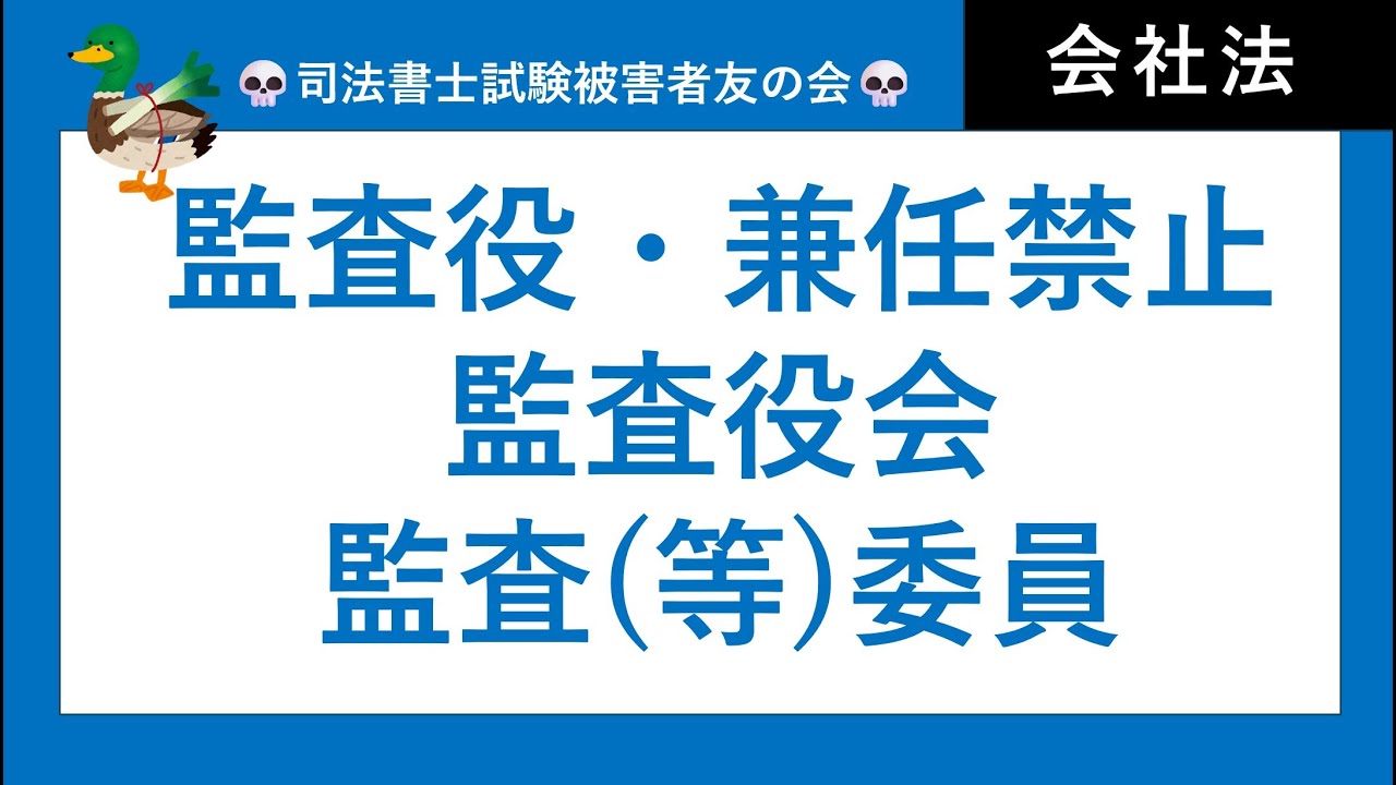 【司法書士・行政書士試験】監査役、監査役会、監査委員、兼任禁止、欠格事由、会計限定監査役、横滑り監査役、みなし決議、議事録、閲覧請求 会社法