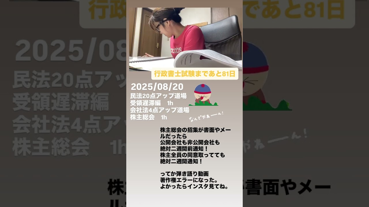 行政書士試験まであと81日その③ #行政書士受験生 行政書士 X LINE コピー 2025.08.202025.08.21 行政書士試験までの勉強記録をタイムラプスで記録中📚 #行政書士受験生 #行政書士試験 #studywithme #タイムラプス勉強 #社会人受験生 #行政書士試験2025