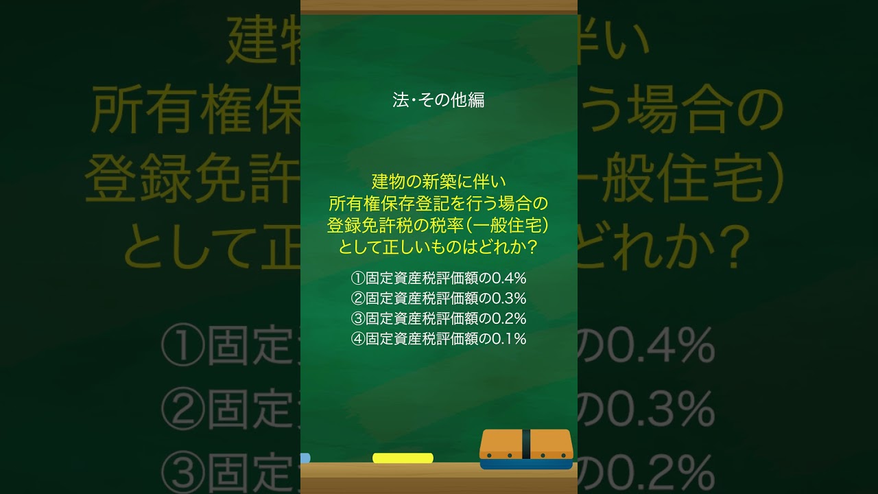 宅地建物取引士の練習問題〜法・その他編9〜 #宅建 #宅地建物取引士 #宅地建物取引士試験 #宅建試験 #宅建試験対策 #ながら学習 #ながら聴き #shorts 宅建(宅地建物取引士) X LINE コピー 2025.08.272025.08.28 フルの動画ではわかりやすい解説付きで配信中! チャンネル登録して日頃の宅建試験勉強に役立ててください! @chikinmasa0307