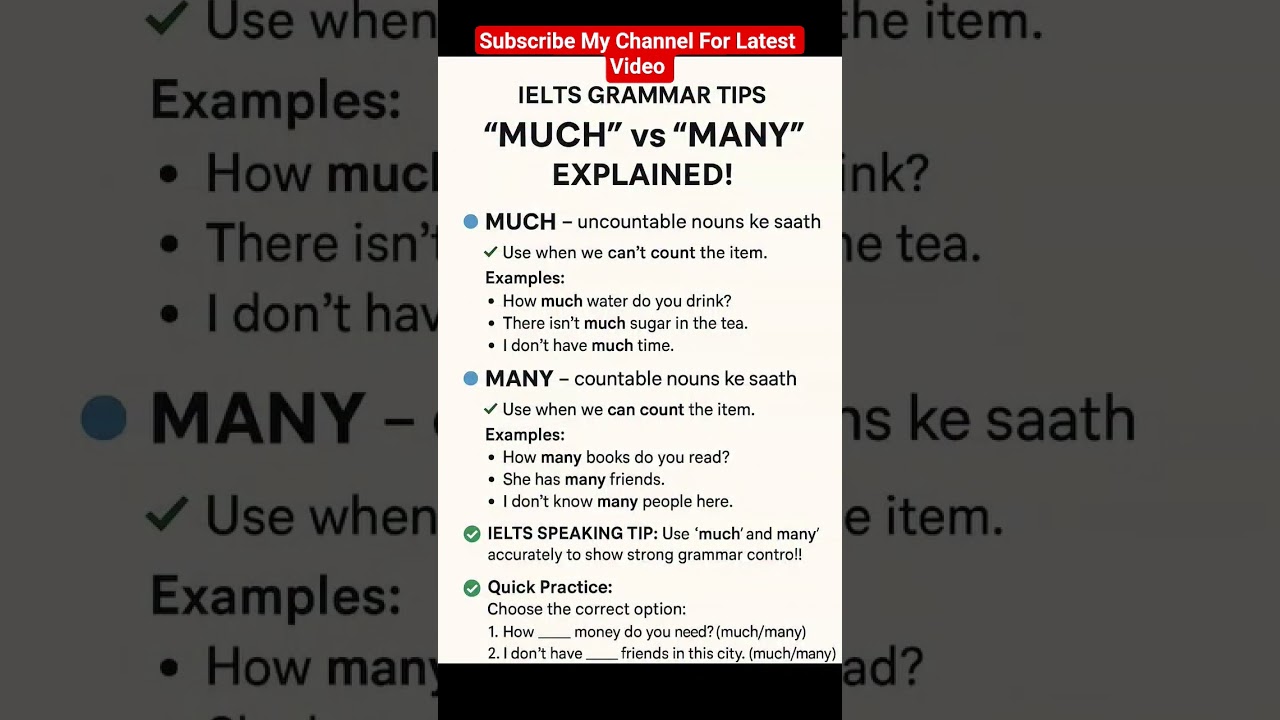 #IELTS #IELTSTips #GrammarTips #MuchVsMany #EnglishShorts