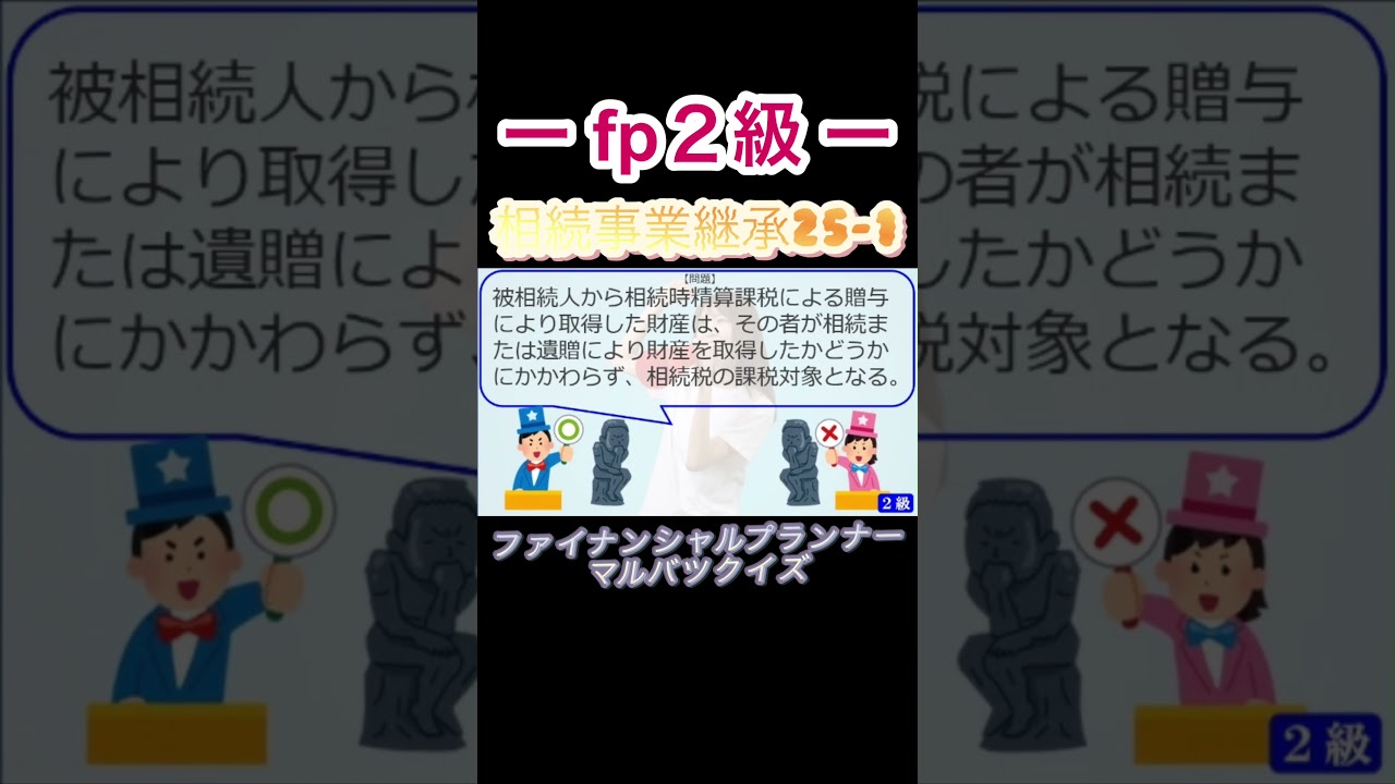 【FP2級】 相続事業継承25-1 #ファイナンシャルプランナー#◯× クイズ#マルバツ#FP#3級#2級#教育#簿記#金融#株式#税金#保険#猫#ライフ#犬#相続#過去問#1分で知識アップ ファイナンシャルプランナー(FP2級・3級) X LINE コピー 2025.09.082025.09.09