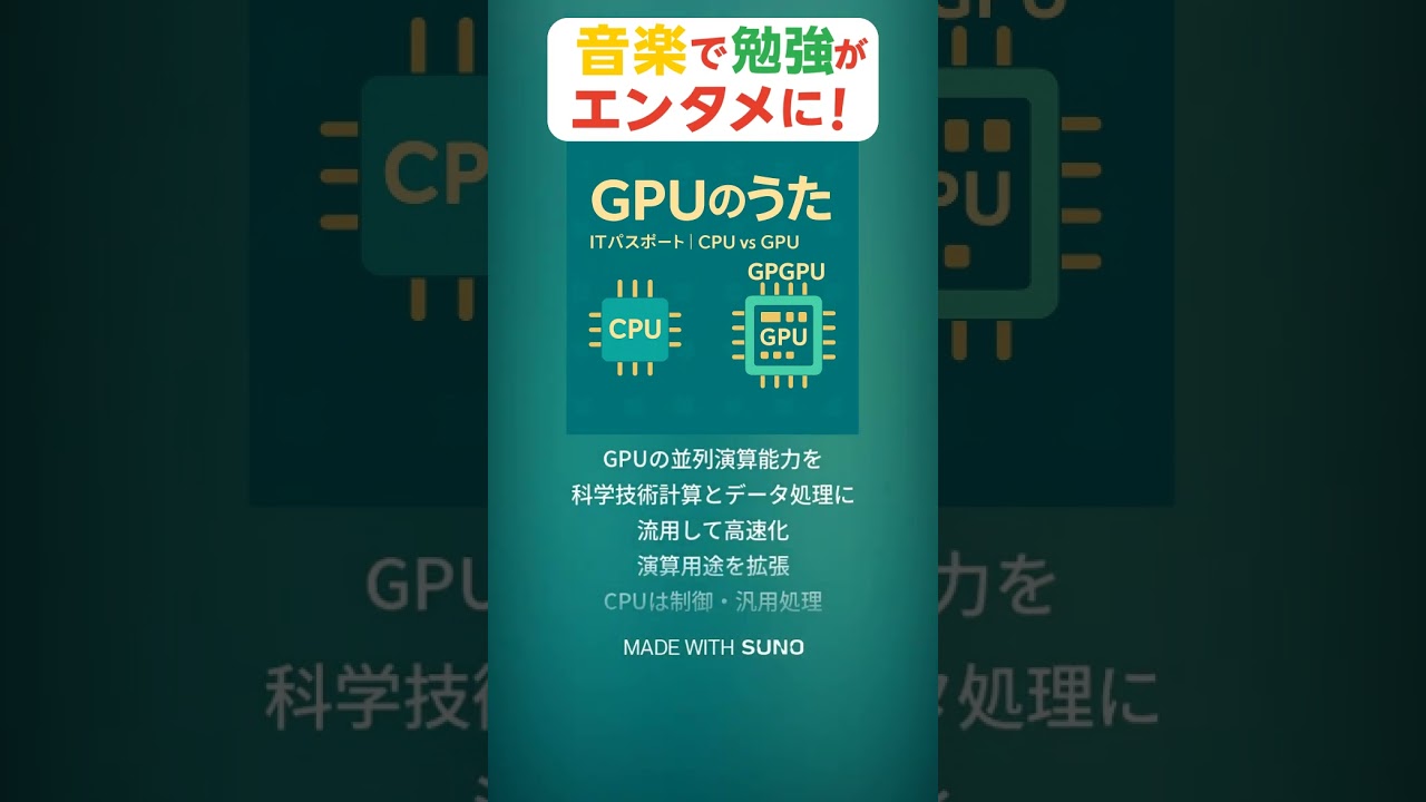 GPUのうた #itパスポート ITパスポート(iパス) X LINE コピー 2025.09.08 『GPUのうた』でGPU/CPU/GPGPUを速習。並列と逐次の違いがスッと入る。いっしょに学ぼう! 解説ブログ #ITパスポート #GPU #GPGPU #CPU #ai作曲