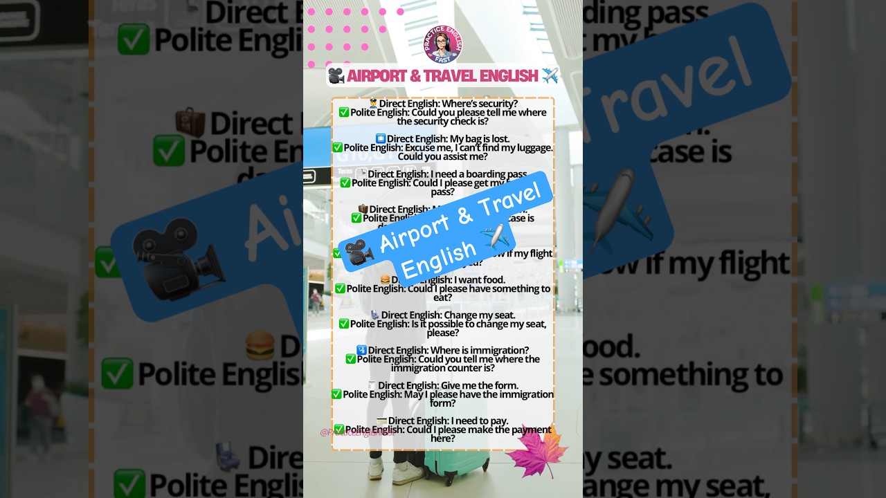 Don’t sound rude at the airport! 🚀 Use these polite English sentences to speak clearly and confidently. Perfect for CELPIP CLB 12 & IELTS Band 9 aspirants 🗣️