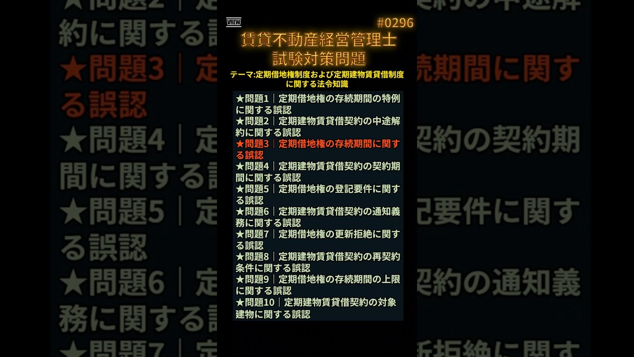 賃貸不動産経営管理士試験に挑むあなたへ──本試験で“差がつく”超難問を完全解説! この動画では、受験生を悩ませる「誤り問題」10問を厳選!予想正解率も提示しながら、誤り箇所を原文に太字で強調し、解説・法令名・条文番号・記憶のヒントまでフル装備で解説します。