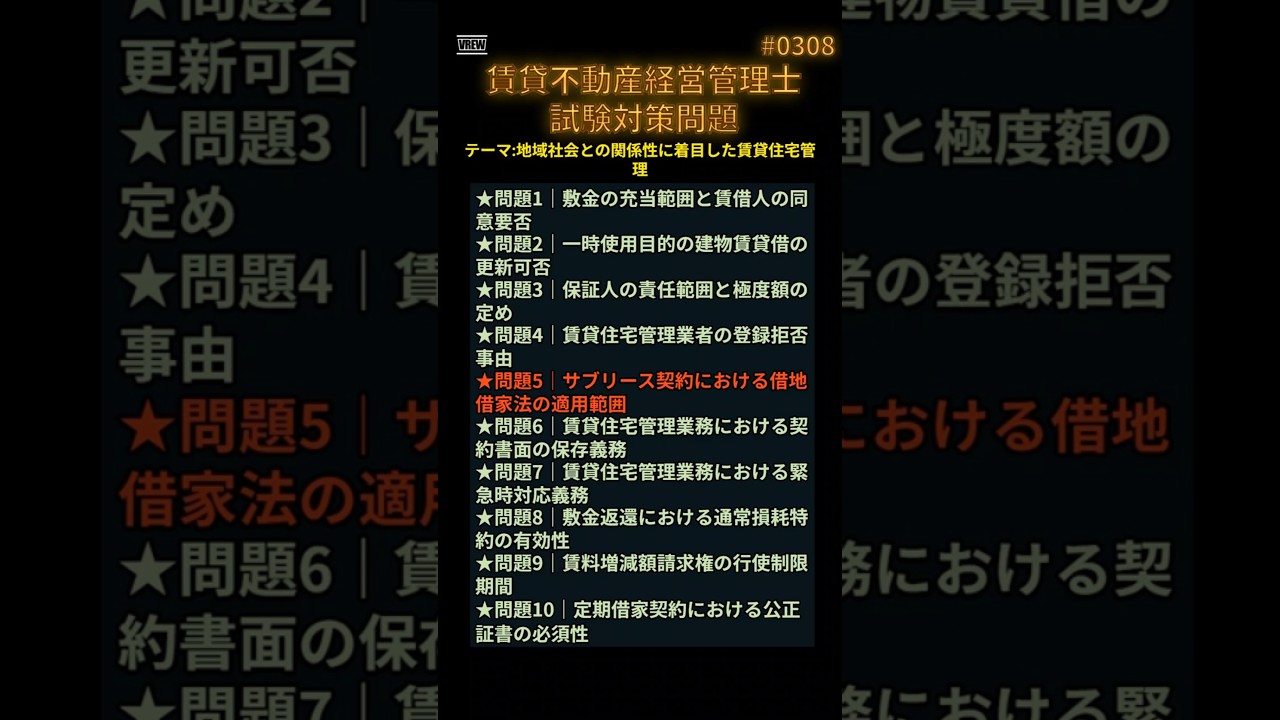 賃貸不動産経営管理士試験に挑むあなたへ──本試験で“差がつく”超難問を完全解説! この動画では、受験生を悩ませる「誤り問題」10問を厳選!予想正解率も提示しながら、誤り箇所を原文に太字で強調し、解説・法令名・条文番号・記憶のヒントまでフル装備で解説します。