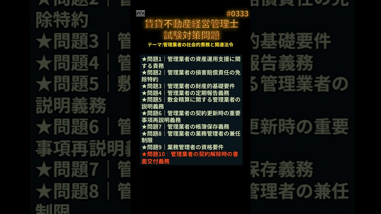 #0333 管理業者の社会的責務と関連法令★問題10|管理業者の契約解除時の書面交付義務