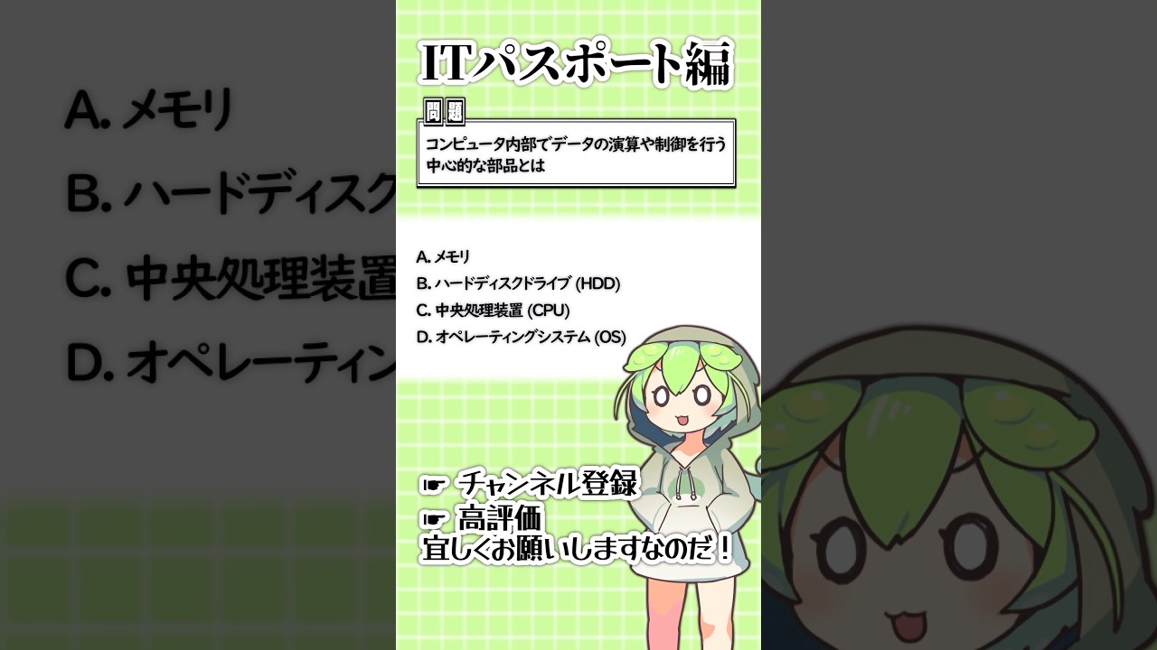 聞いて覚える!ITパスポートの4択問題を手軽に解くのだ!#ずんだもん #資格 #itパスポート #shorts