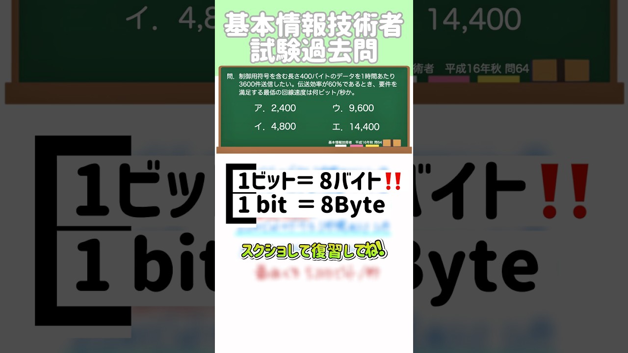 1ビット=8バイト‼️ #itパスポート #基本情報技術者試験