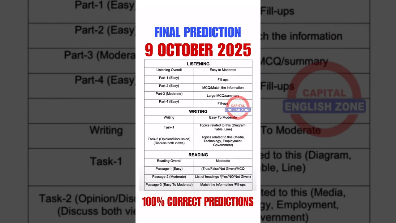 18 october 2025 ielts exam prediction