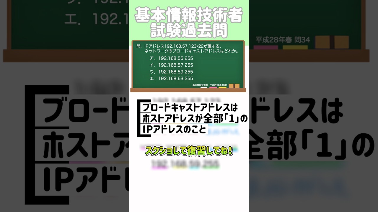 ブロードキャストアドレスはホスト部が全部1‼️ #itパスポート #基本情報技術者試験