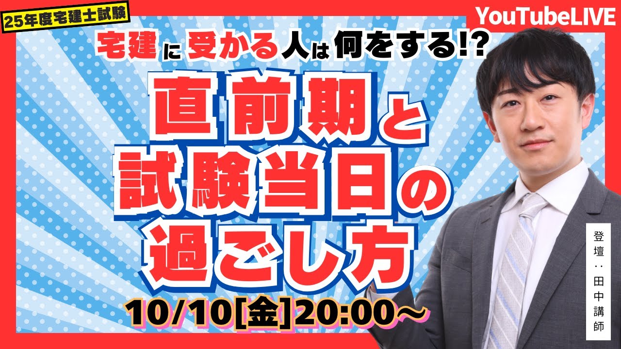 試験前の最後のYouTubeLive、ぜひお役立てください。