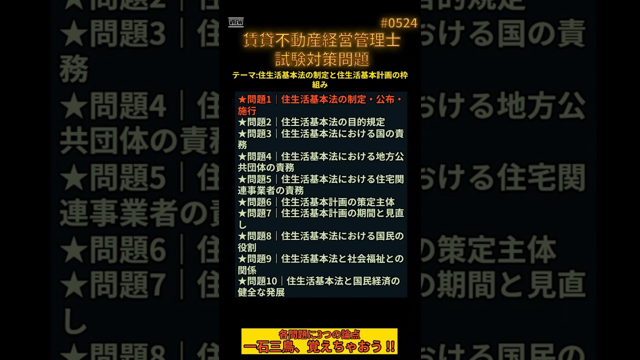 #0524 ★問題1|住生活基本法の制定・公布・施行