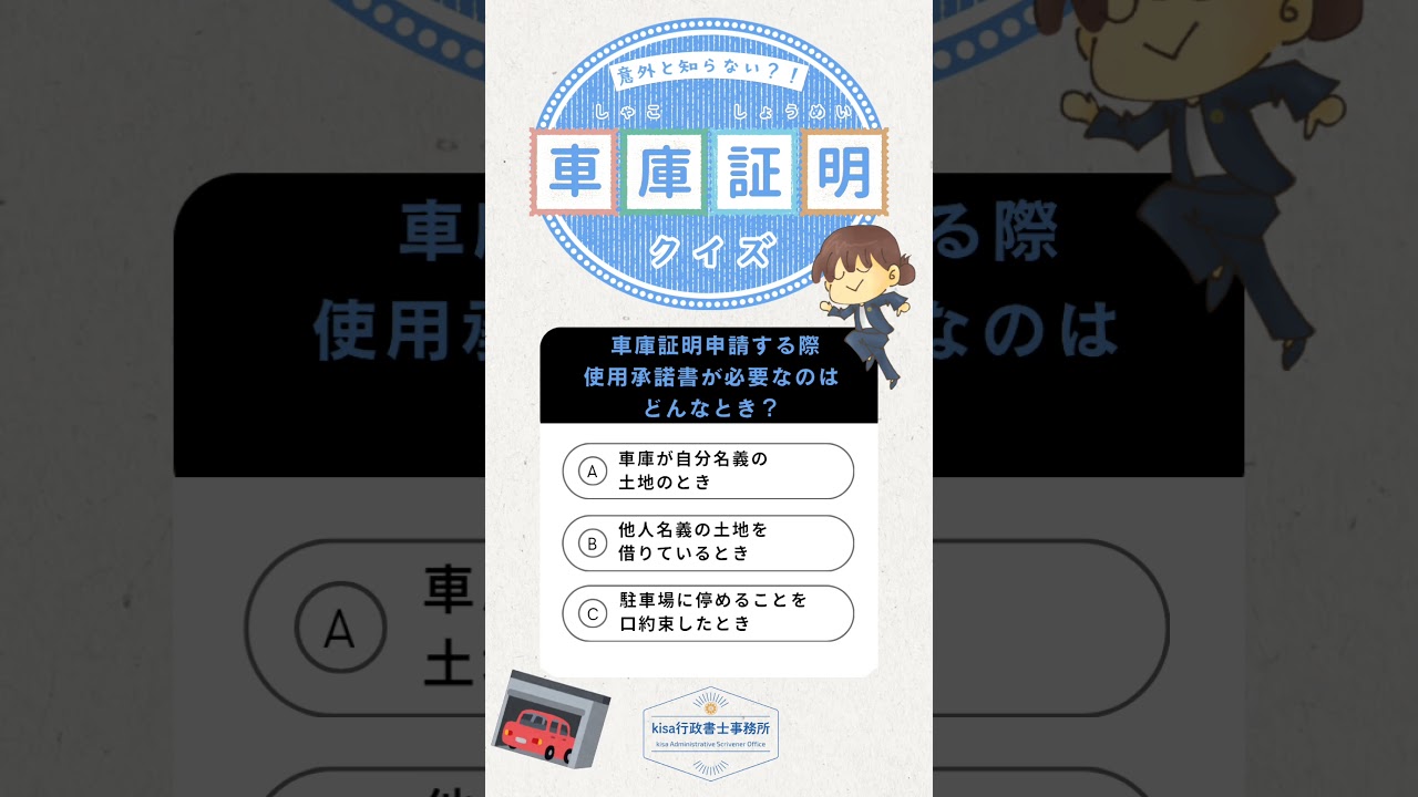 青森県つがる市のkisa行政書士事務所です🌼今回の「正解はコメント欄!」も車庫証明、使用承諾書に関する問題。どうぞ楽しんでくださいね😊!#車庫証明 #青森県 #つがる市 #五所川原市 #行政書士 行政書士 X LINE コピー 2025.10.16
