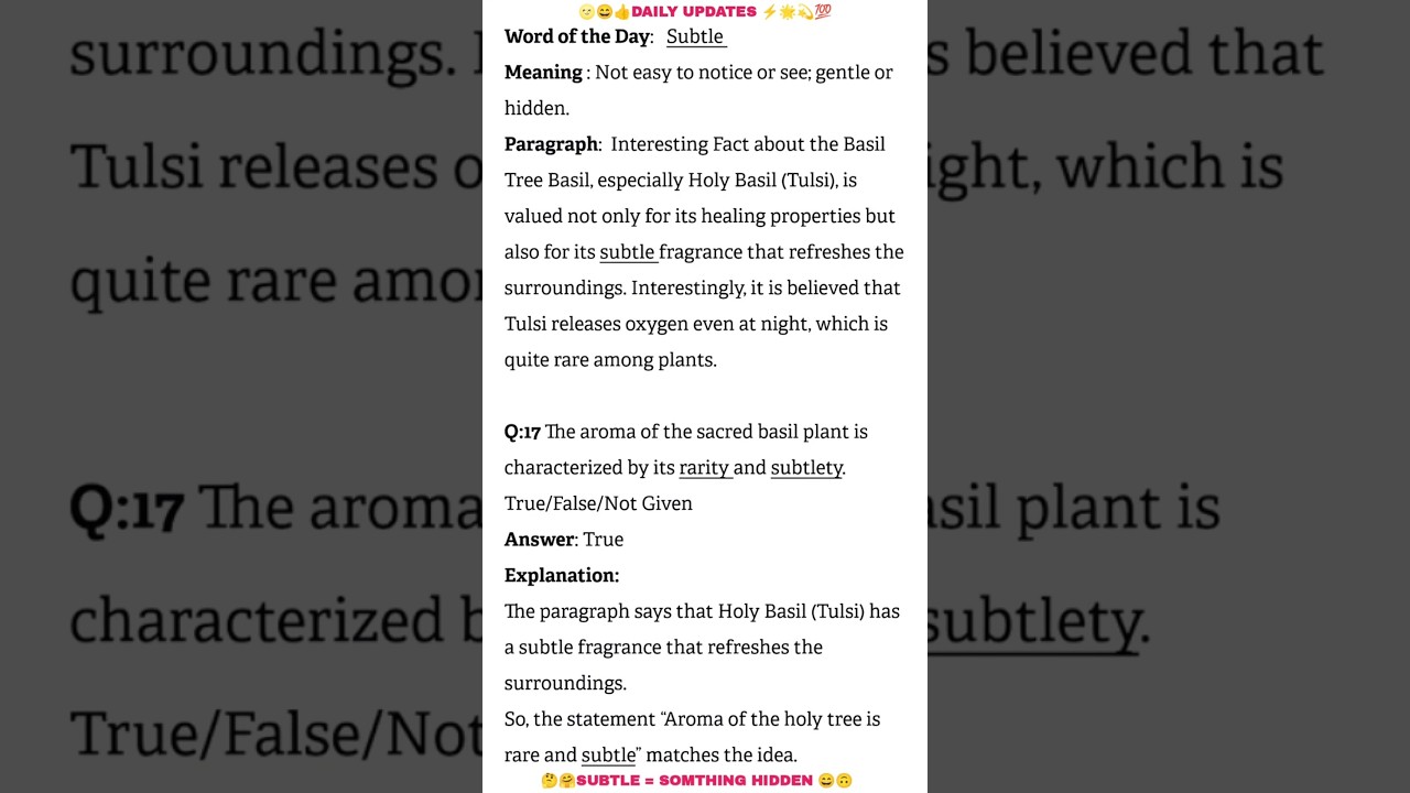 IELTS Reading & Word of the Day: Subtle 🌿 | Learn English with Tulsi’s Fascinating Fact