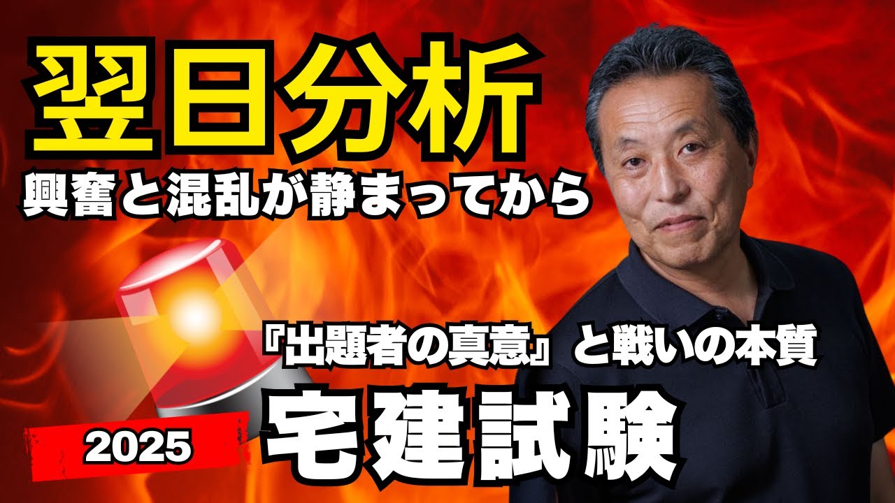 試験直後の速報は「興奮と混乱」になりがち。戦いから一夜明けた月曜日、冷静に今年の宅建試験を総括する。出題者のワナを分析し「合否を分けた問題」を暴く。宅建は単なる資格ではなく武器、合格ではなく覚醒だ。あなたの努力を市場価値へ。これからのキャリアを踏まえ、2025年をいっしょに振り返ろう。