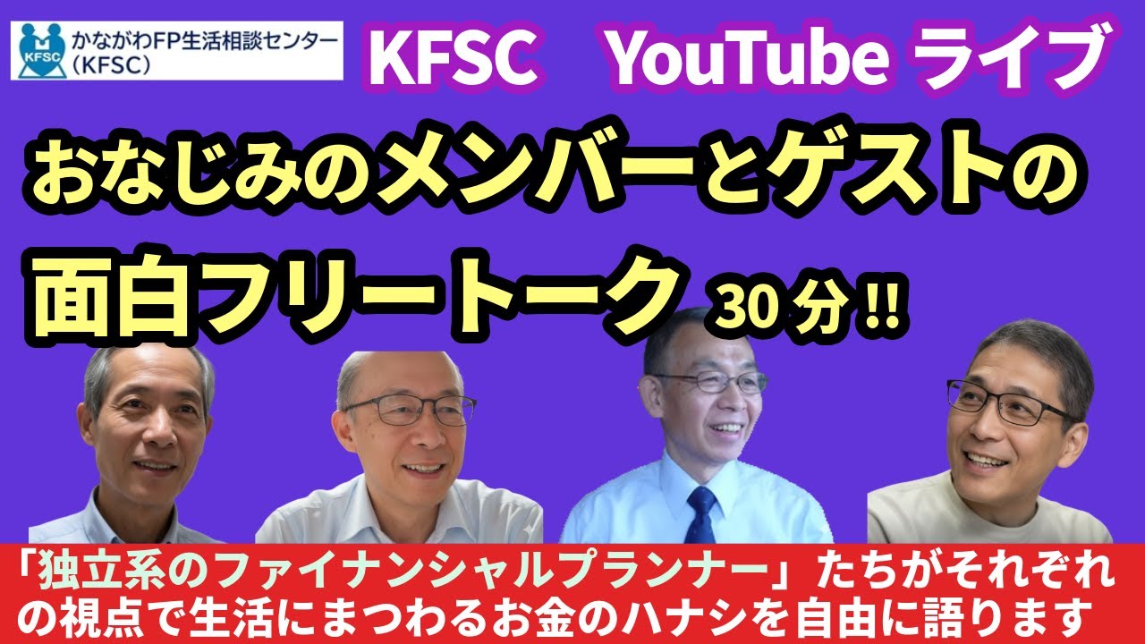 定期的に、生活に密着したお金にまつわるお話を、KFSC所属のファイナンシャルプランナー達が本音で語ります。それぞれの経験やおススメお役立ち情報等もお話します。