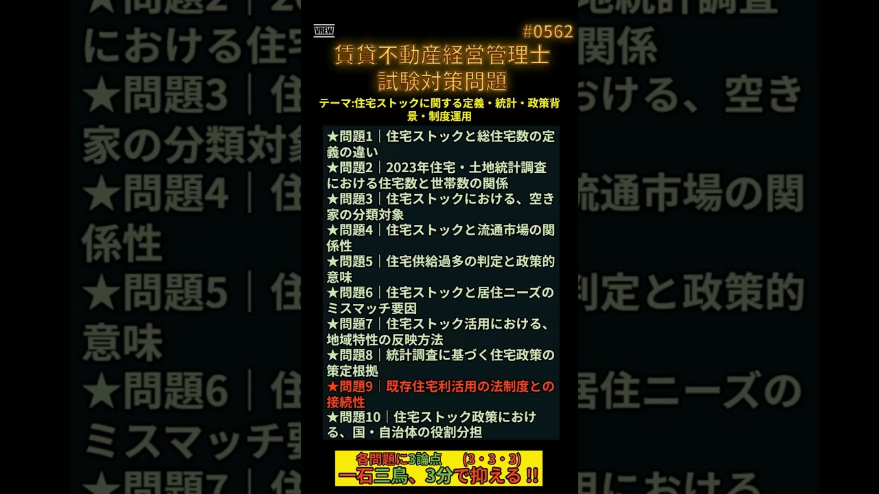 #0562 ★問題9|既存住宅利活用の法制度との接続性