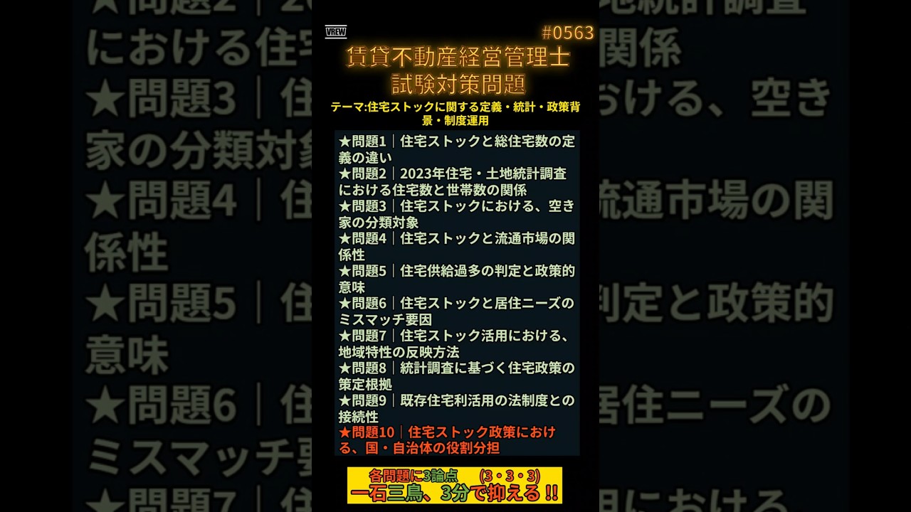#0563 ★問題10|住宅ストック政策における、国・自治体の役割分担