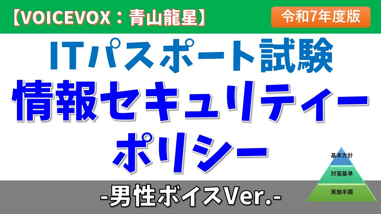 #itパスポート #解説 #解説動画 #情報処理技術者試験 #ipa #dx #作業用 #作業用bgm #垂れ流し #睡眠学習 #独学 #情報セキュリティ #試験対策 #国家試験 #voicevox #青山龍星 #voicevox解説