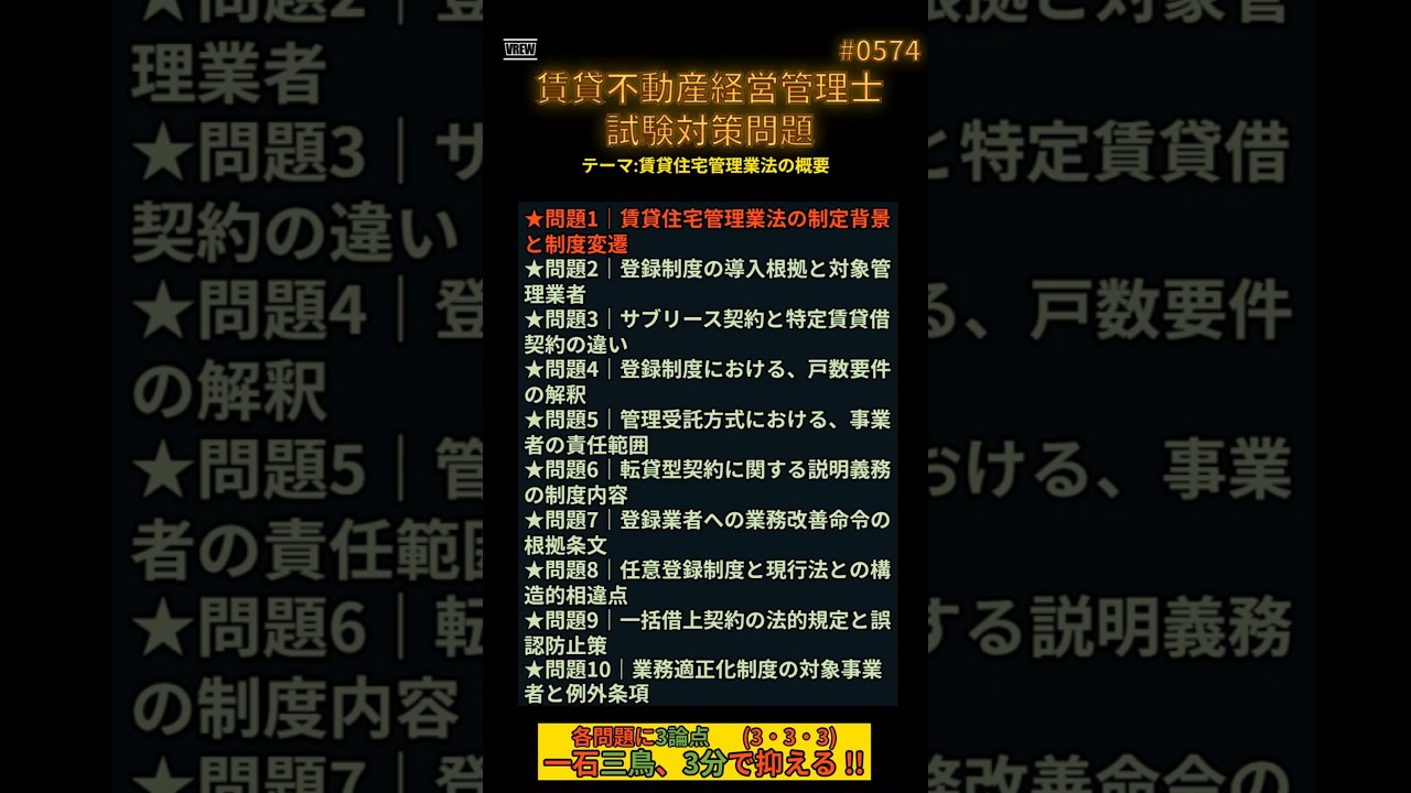 #0574 ★問題1|賃貸住宅管理業法の制定背景と制度変遷