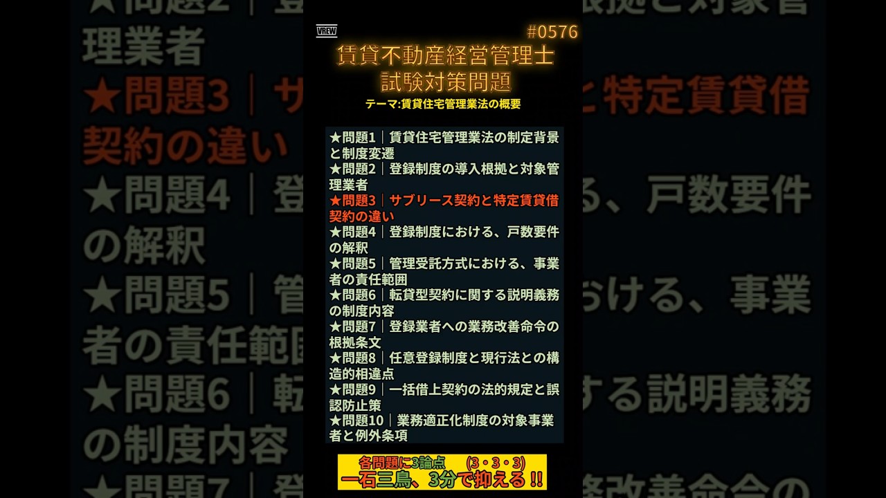 #0576 ★問題3|サブリース契約と特定賃貸借契約の違い