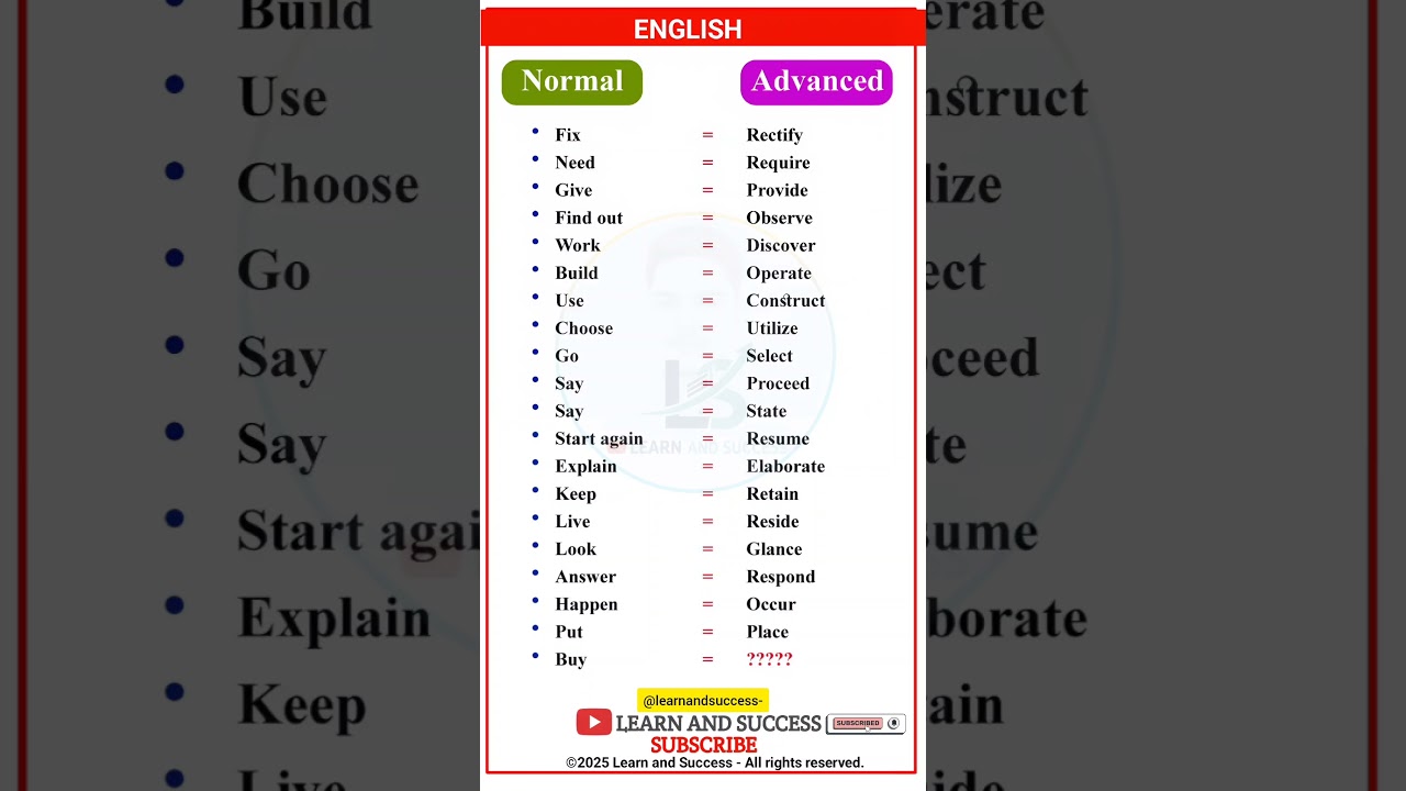 Stop using boring English words and level up your vocabulary! 🚀 This YouTube Short gives you over 20 advanced English words to make your speaking and writing sound more professional and native.