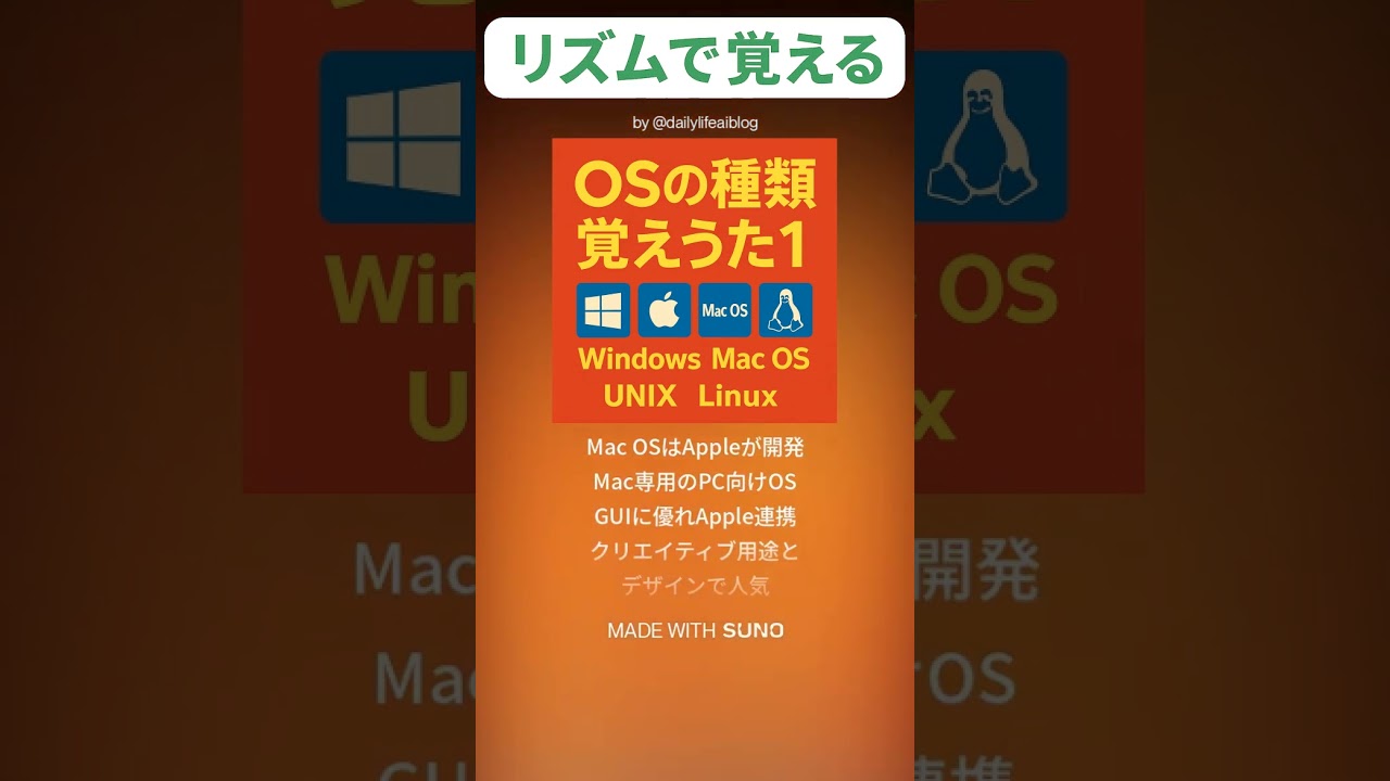 #ITパスポート #OSの種類 #AI記憶Music #Windows #MacOS #UNIX #Linux #AI音楽 #資格勉強 #学習ソング #ai作曲
