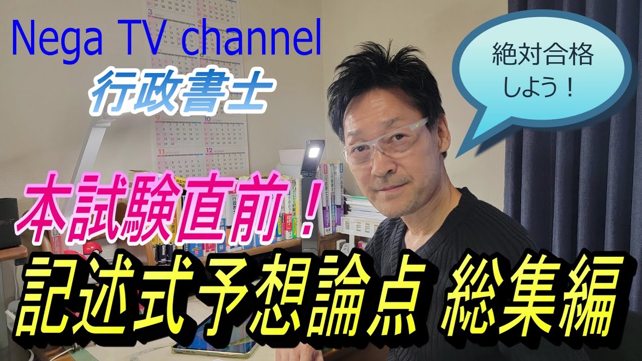 いよいよ行政書士試験ですね。今日まで頑張ってこられた皆様の力がここで試されます。そこで今回は記述式の予想論点を、過去動画から選抜してご案内します。本試験前に是非復習して下さい。皆様の健闘をお祈りいたします。