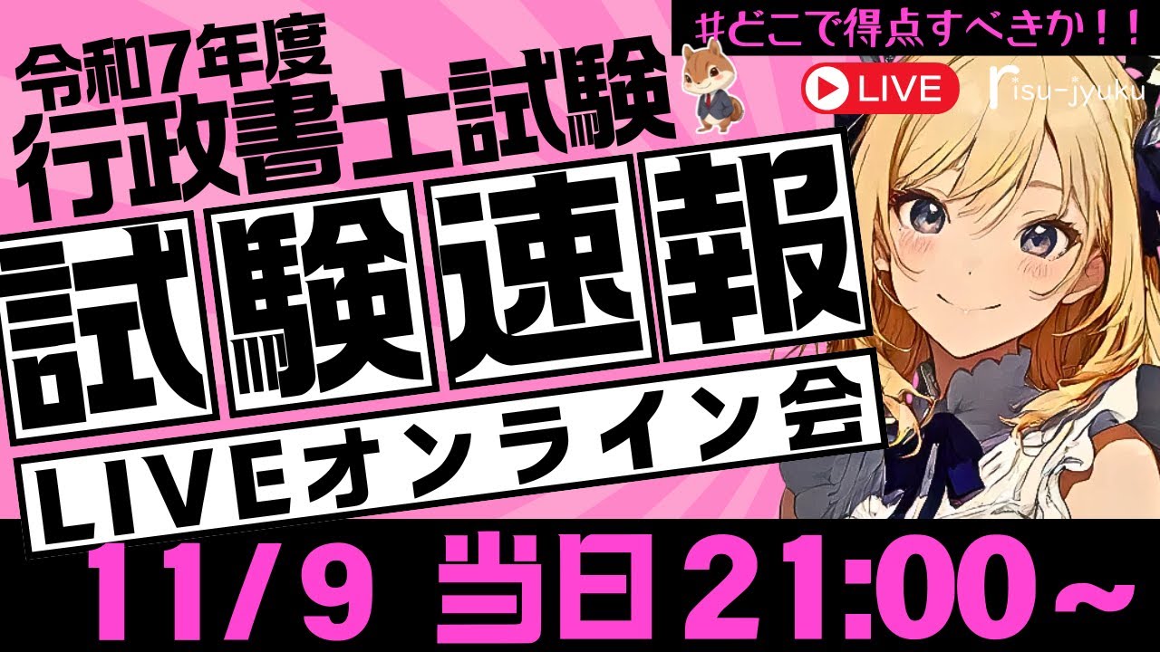 【行政書士試験】21:00~試験速報 LIVEオンライン会 11/9