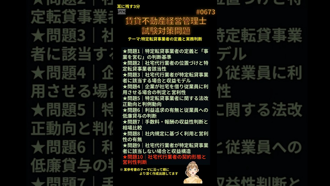 #0673 ★問題10|社宅代行業者の契約形態と営利性判断