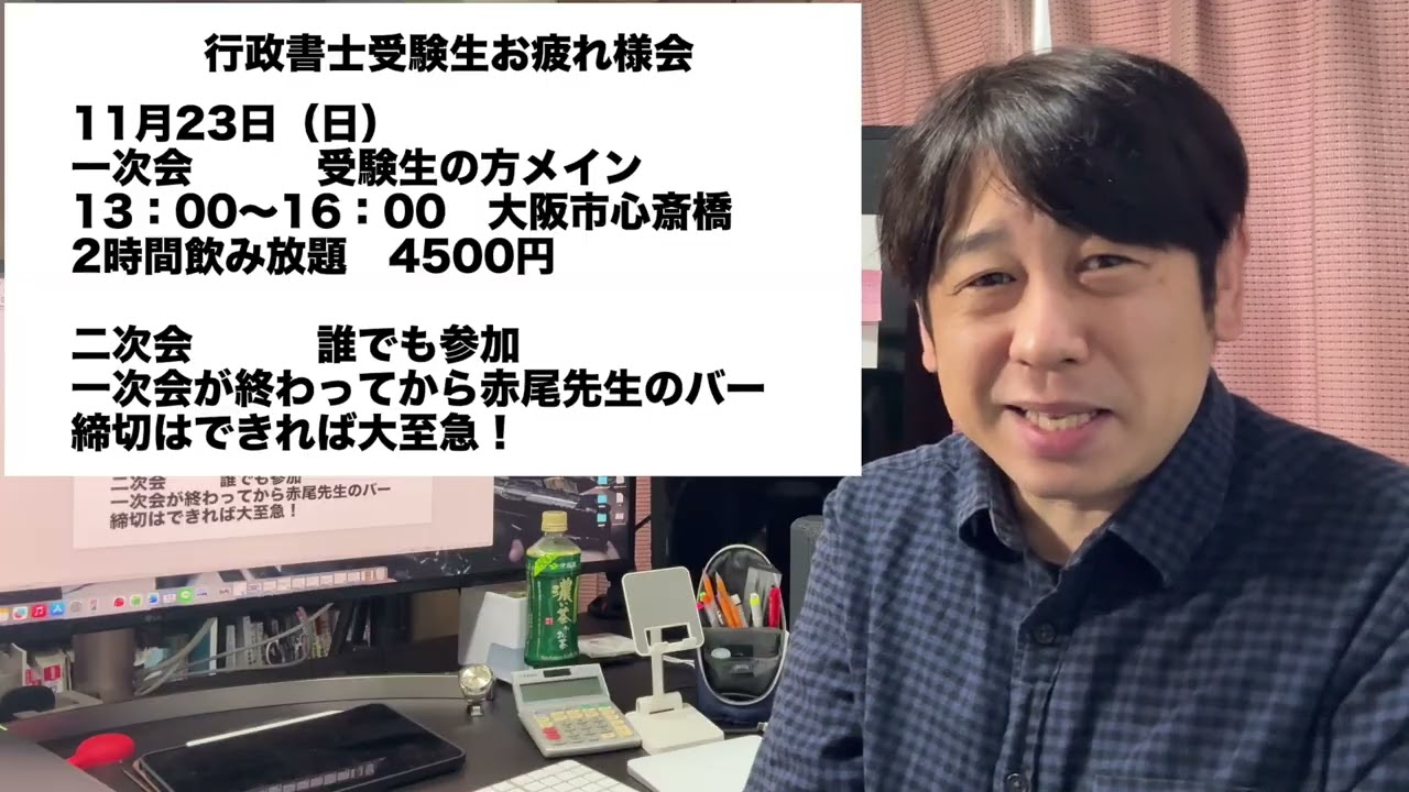 11月23日(日)大阪で行政書士受験生、行政書士、他の士業の方の親睦会を開催します!行政書士独学サポートチャンネルの西田さんと共同開催しますので、ぜひお越しください。
