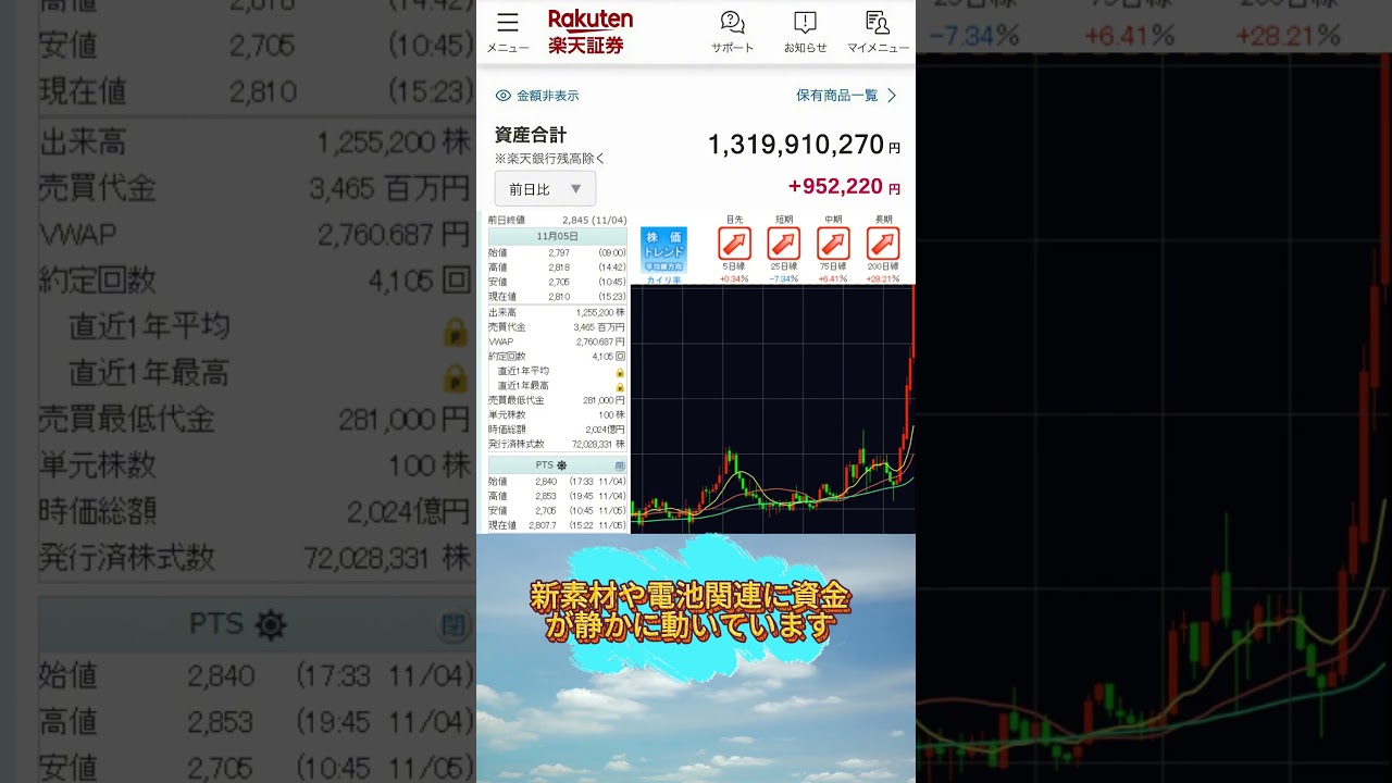 新素材や電池関連に資金が静かに動いています。