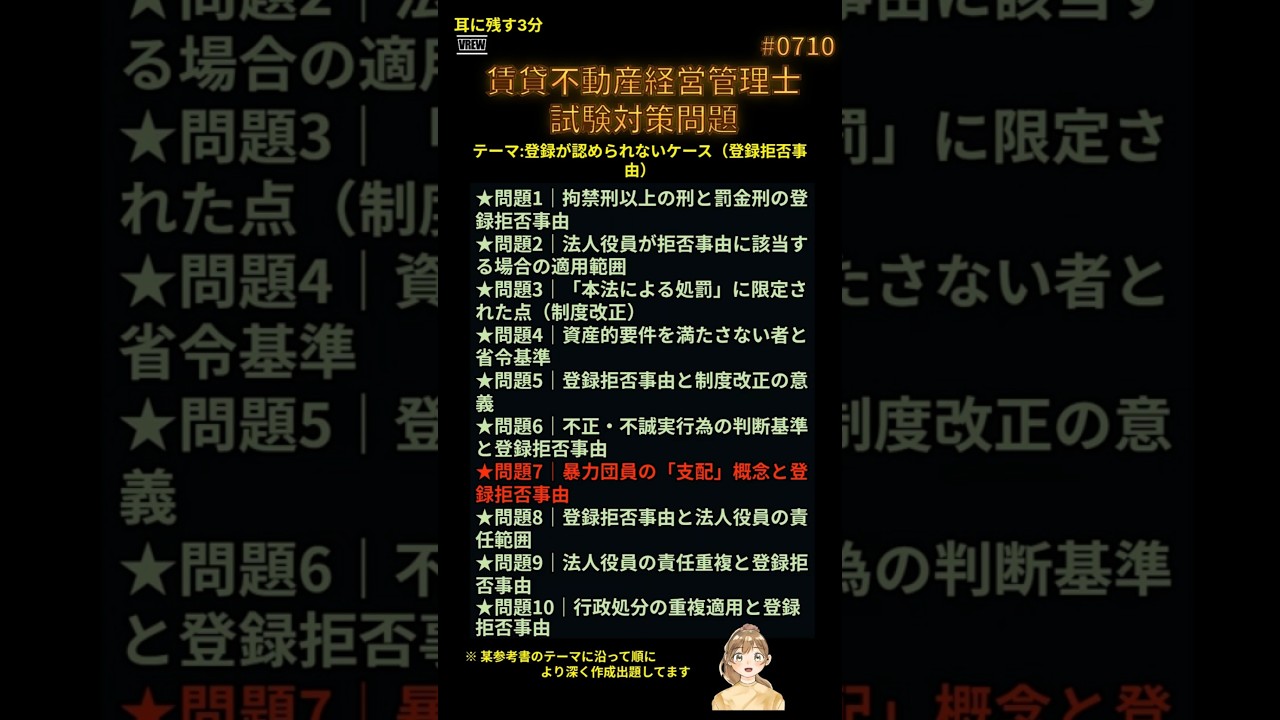 #0710 ★問題7|暴力団員の「支配」概念と登録拒否事由