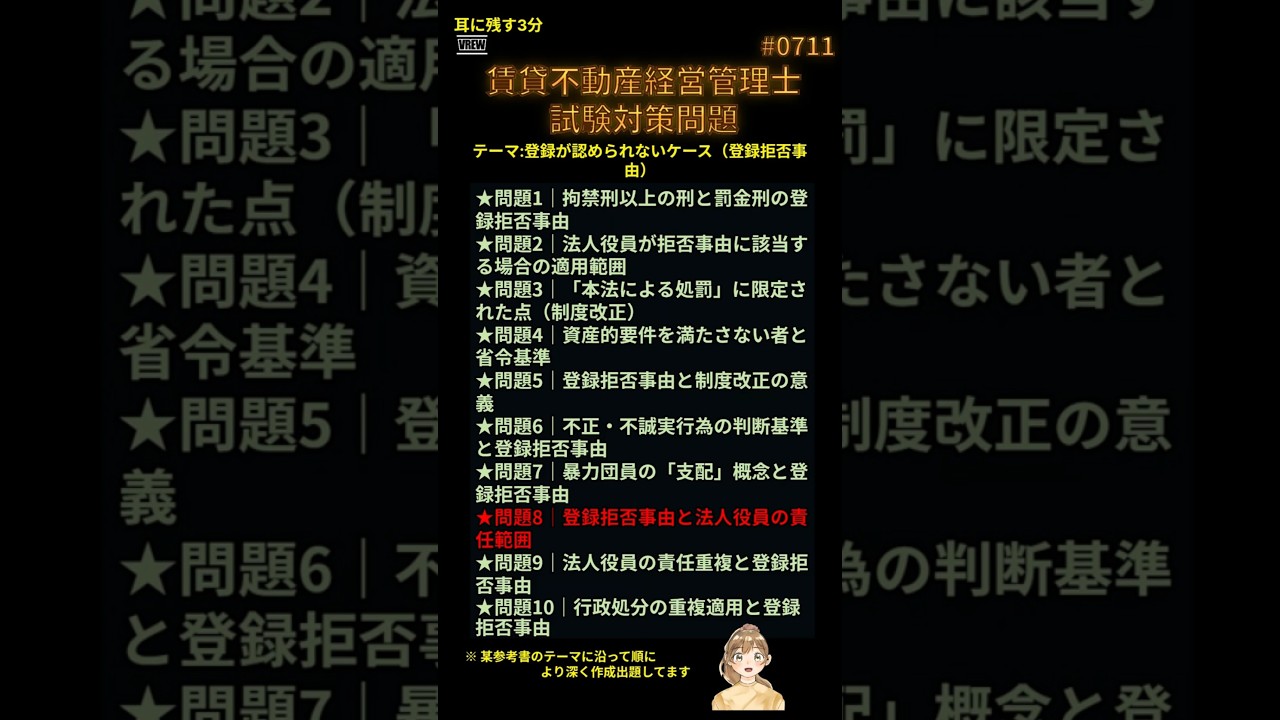 #0711 ★問題8|登録拒否事由と法人役員の責任範囲