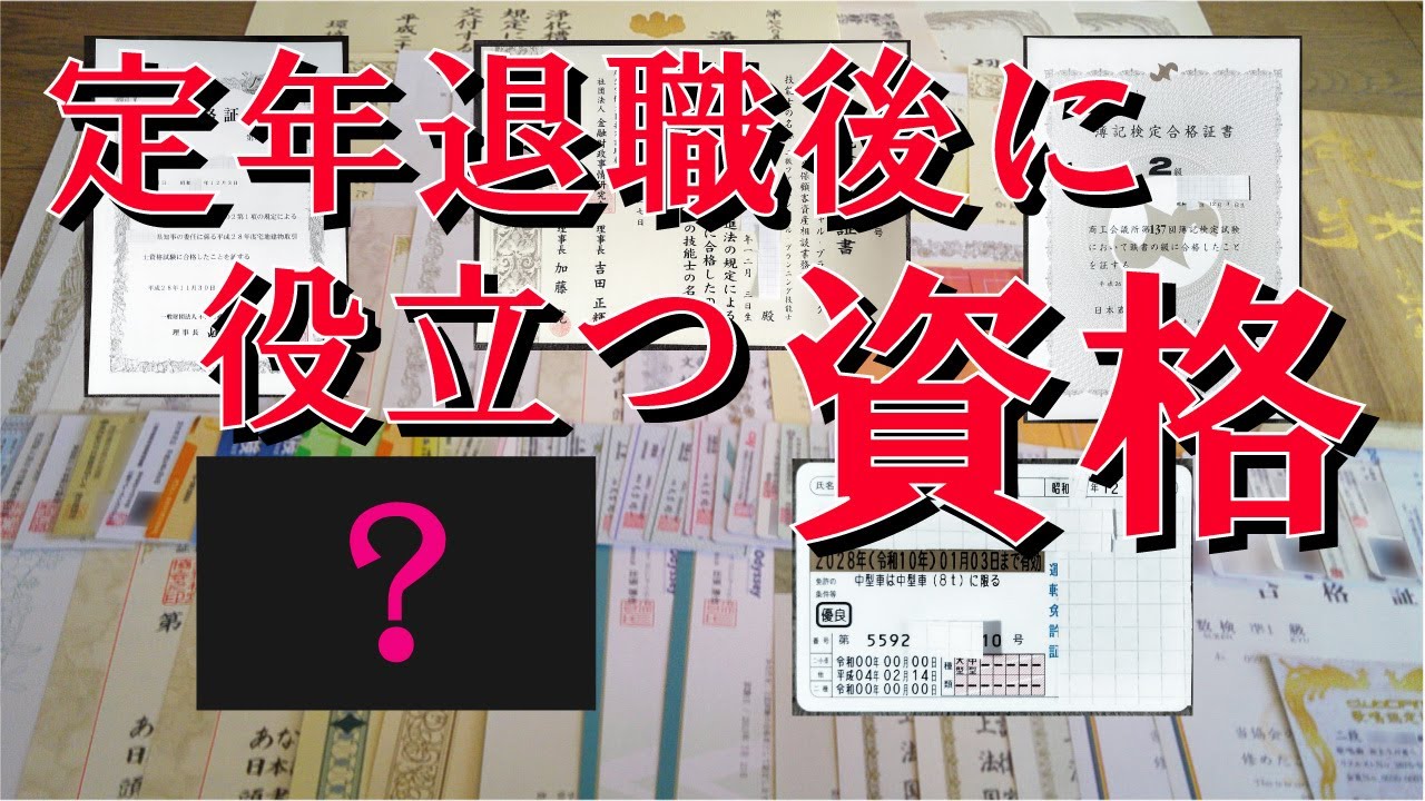 定年退職後 に 役立つ 資格【老後】【普通自動車第二種】【FP技能士】【乙種第4類危険物取扱者】【宅地建物取引士】【日商簿記検定】【大型自動車第一種】【準中型自動車】