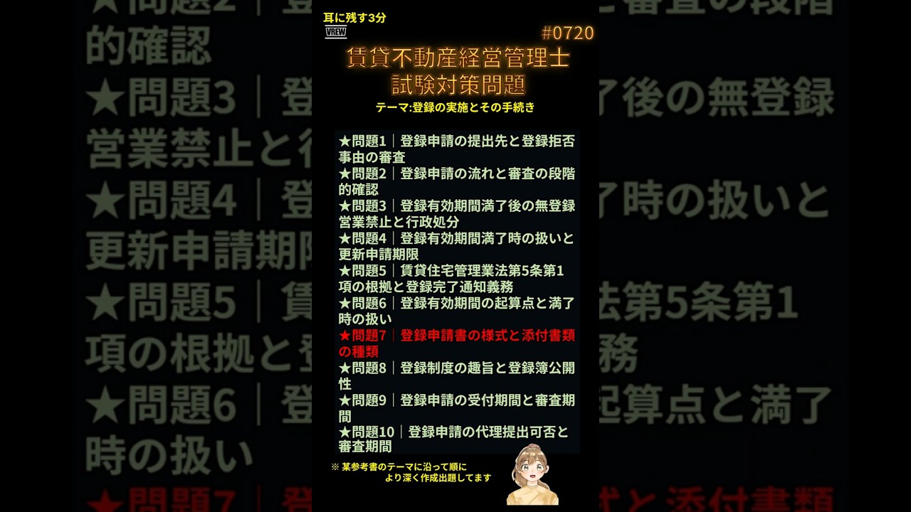 #0720 ★問題7|登録申請書の様式と添付書類の種類