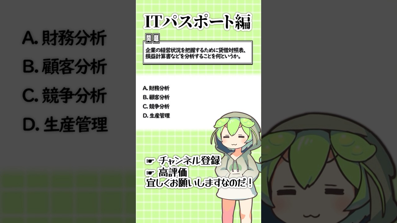 聞いて覚える!ITパスポートの4択問題を手軽に解くのだ!㊵ #ずんだもん #資格 #itパスポート ITパスポート(iパス) X LINE コピー 2025.11.232025.11.24 ご視聴頂きありがとうございます! コメント・高評価とても励みになります。 ◆Voicebox :ずんだもん #ずんだもん #資格 #IT
