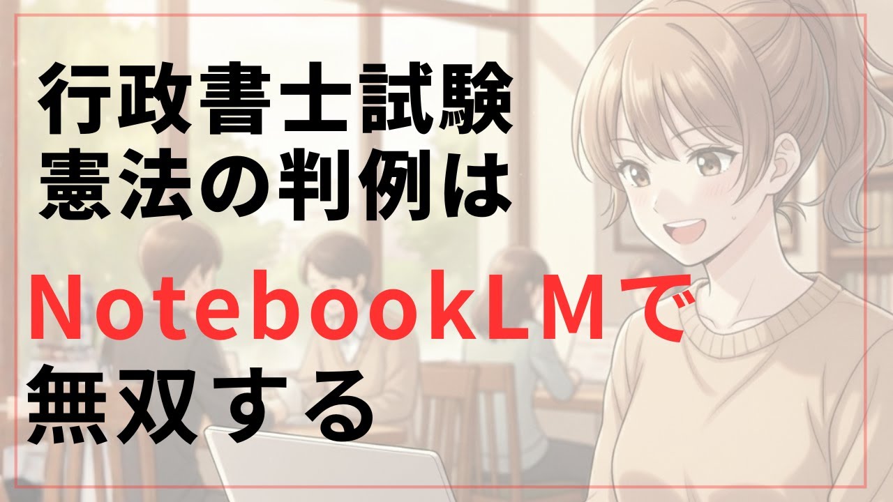 【行政書士 憲法攻略】判例の壁を突破!AI(NotebookLM)で理解度と記憶定着を劇的に上げる方法⚠️ 憲法学習の最大の壁:「判例」の難解さ行政書士試験の憲法では、条文暗記よりも判例の理解が合否を分けます。しかし、判例の原文は抽象的で専門用語が多く、独学の受験生にとって最大の壁となりがちです。この動画では、この判例の壁を突破し、憲法を得点源にするために、**AIツール「NotebookLM」**を活用した学習方法をご紹介します。🚨 従来の勉強法の限界(1:08〜)参考書の壁: 読んでも曖昧な理解に終わり、判例の結論や理由が記憶に残らない。判例集の壁: 専門用語だらけで敷居が高く、そもそも読み進めるのが困難。過去問の壁: 解説を読んでも、その判例の背景や真の理由が見えにくい。🚀 NotebookLMが学習を変える 3ステップ(1:34〜)NotebookLMは、判例の原文PDFやテキストを読み込ませることで、あなたの学習パートナーとして機能します。【理解】判例PDFの読み込み: 難解な判例の原文をそのまま入力します。【整理】AIが要点を自動抽出: 争点、結論、理由といった判例の核となる部分をAIが自動で整理・要約します。
