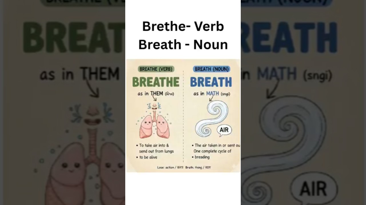 breathe vs breath. #verb #noun #ielts