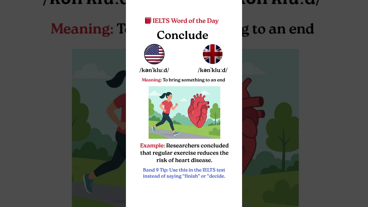 IELTS Word of the Day: Conclude.#ieltsvocabularyenglish #ieltsspeakingpractice #ieltsvocabulary