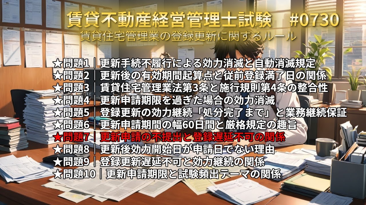 #0730 ★問題7|更新申請の不提出と登録遅延不可の関係