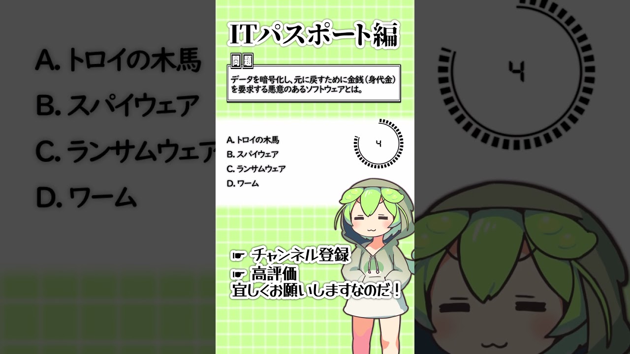 聞いて覚える!ITパスポートの4択問題を手軽に解くのだ!54 #ずんだもん #資格 #itパスポート ITパスポート(iパス) X LINE コピー 2025.11.302025.12.01 ご視聴頂きありがとうございます! コメント・高評価とても励みになります。 ◆Voicebox :ずんだもん #ずんだもん #資格 #IT