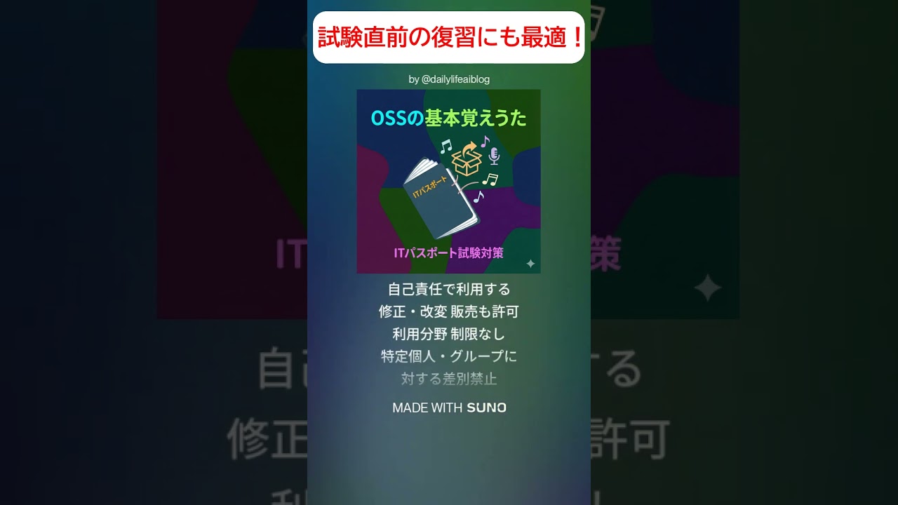 #ITパスポート #OSS #オープンソース #試験対策 #暗記 #SunoAI #AI音楽 #資格勉強 #聞き流し #教育 #ai作曲