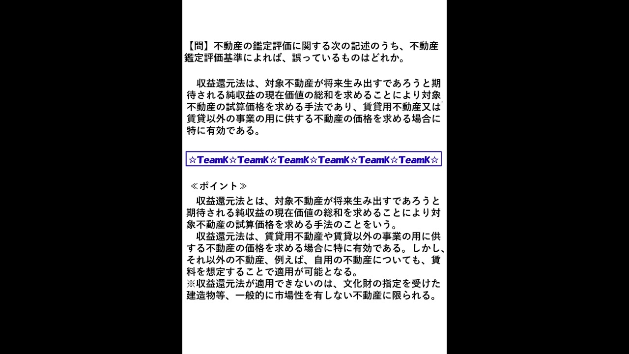【Team K】宅建過去問・練習問題selection一問一答解説357☆宅地建物取引士試験・不動産鑑定士試験対策講義☆#shorts #宅地建物取引士試験#不動産鑑定士試験#ダブル合格#トリプル合格